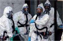В осередку біологічного зараження і появи особливо небезпечних інфекцій запроваджують стан суворого протиепідемічного режиму. Перебуваючи там, рятувальники використовують протичумні костюми (іл. 33.14), які знімають, виходячи із зараженої зони перед повною санітарною обробкою.